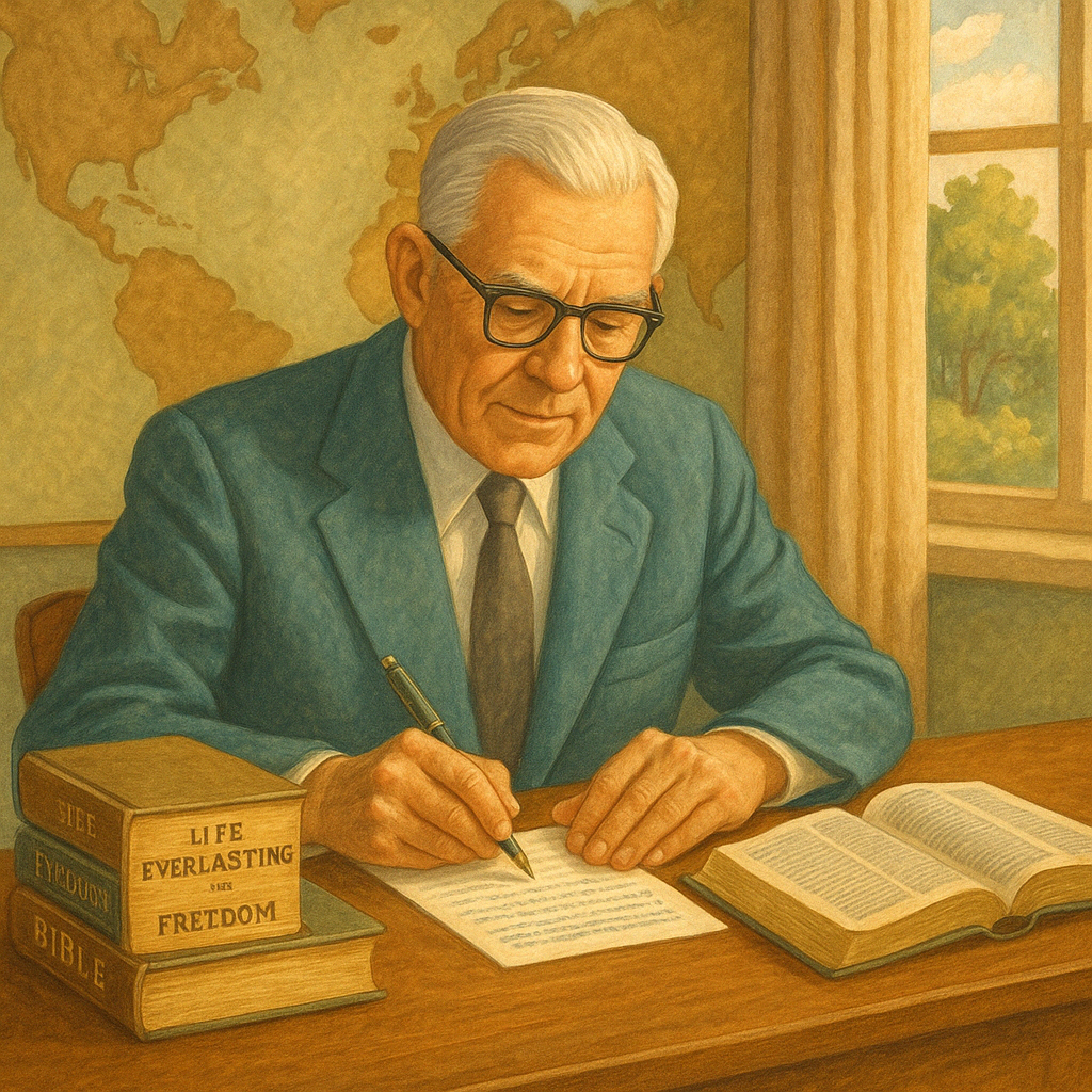 Joseph F. Rutherford, who succeeded Charles Taze Russell, published over 100 books and booklets between 1917 and 1942, using bold, declarative language to reshape Watch Tower doctrine, promote the name “Jehovah’s Witnesses,” and emphasize the urgency of Armageddon and loyalty to God’s Kingdom.