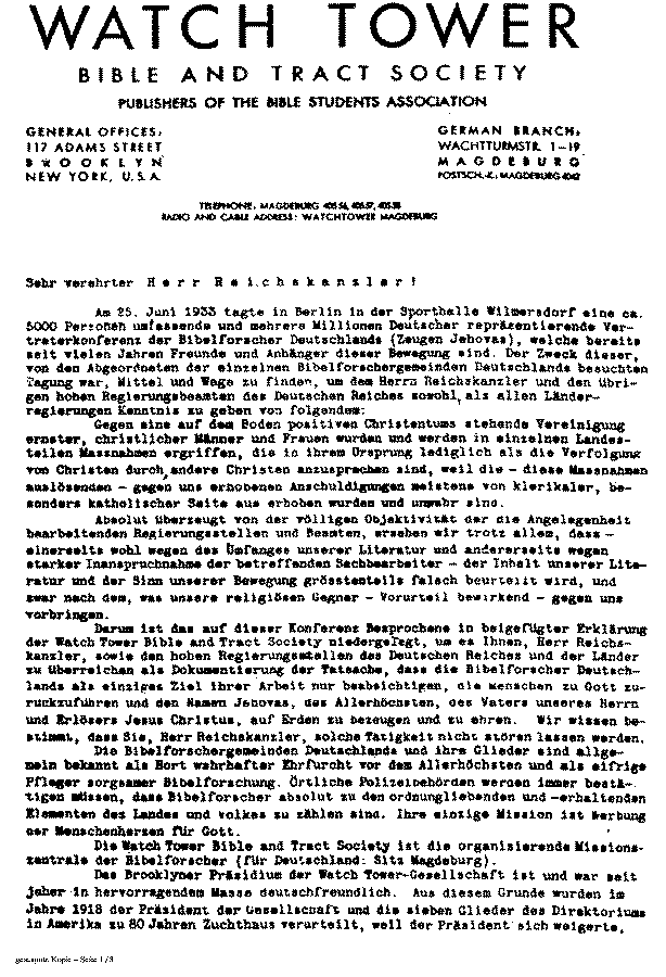 - Scholars and former members have debated whether this was a cowardly compromise or a misguided attempt at protecting German Witnesses from persecution.